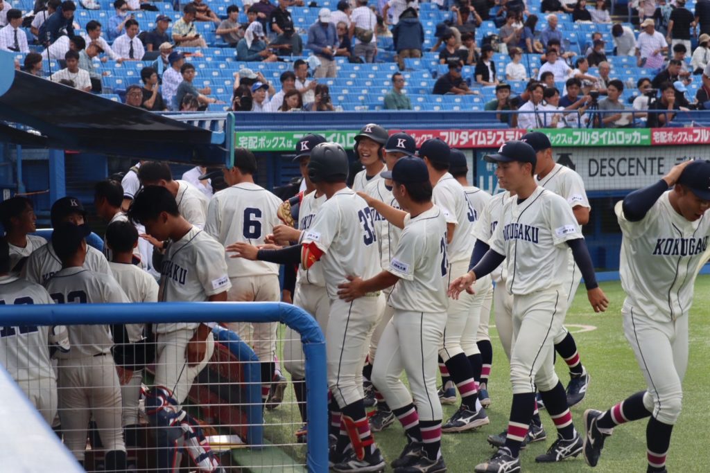 終盤の9回に勝ち越されて絶体絶命のピンチを迎えますが、直後に緒方漣(2年/横浜)が同点ホームランを放ち、試合を振り出しに戻しました。
