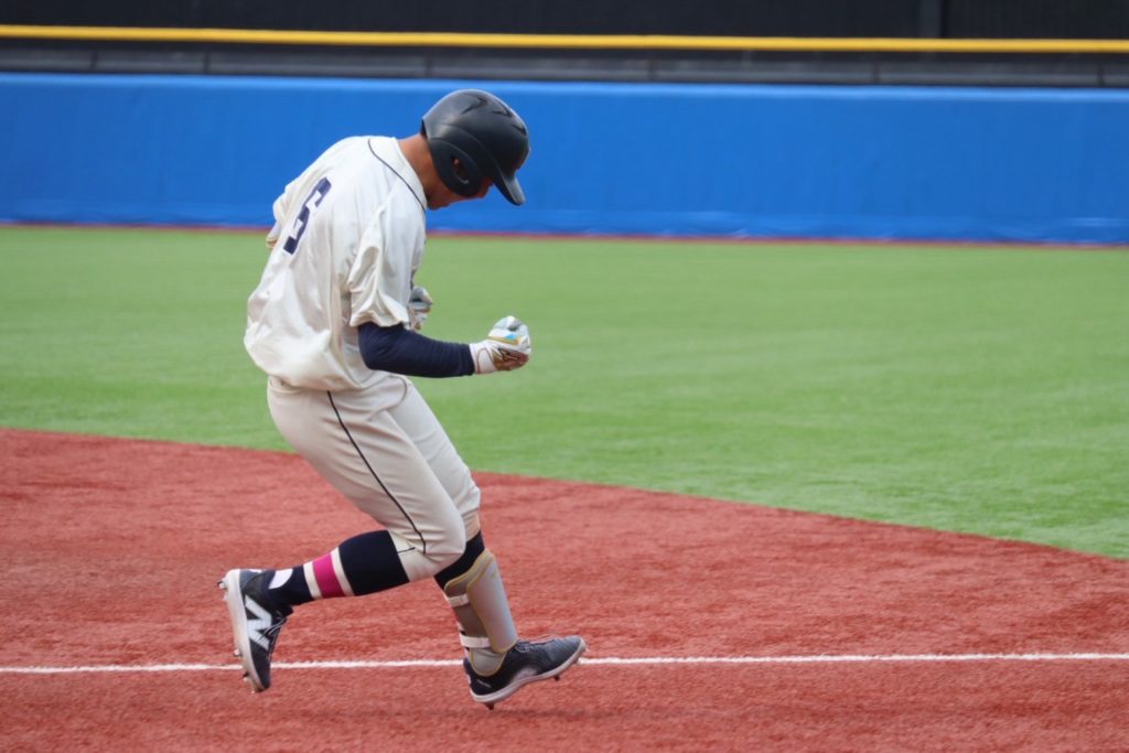 試合は5回に渡辺嶺(4年/國學院久我山)のソロホームランで先制するも、すぐに同点に追いつかれます。