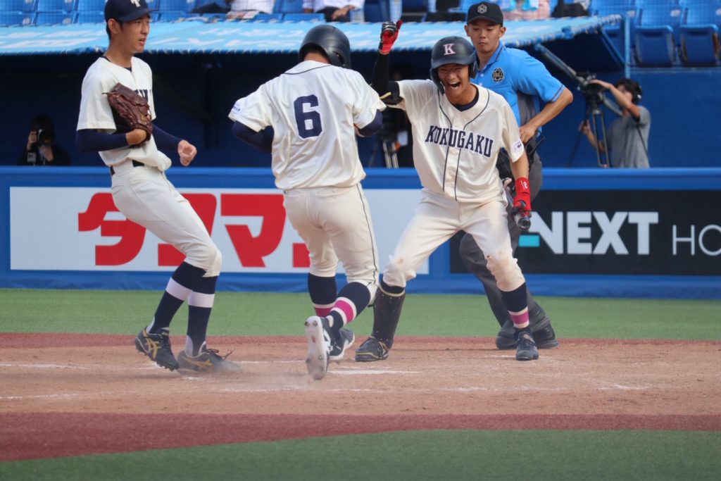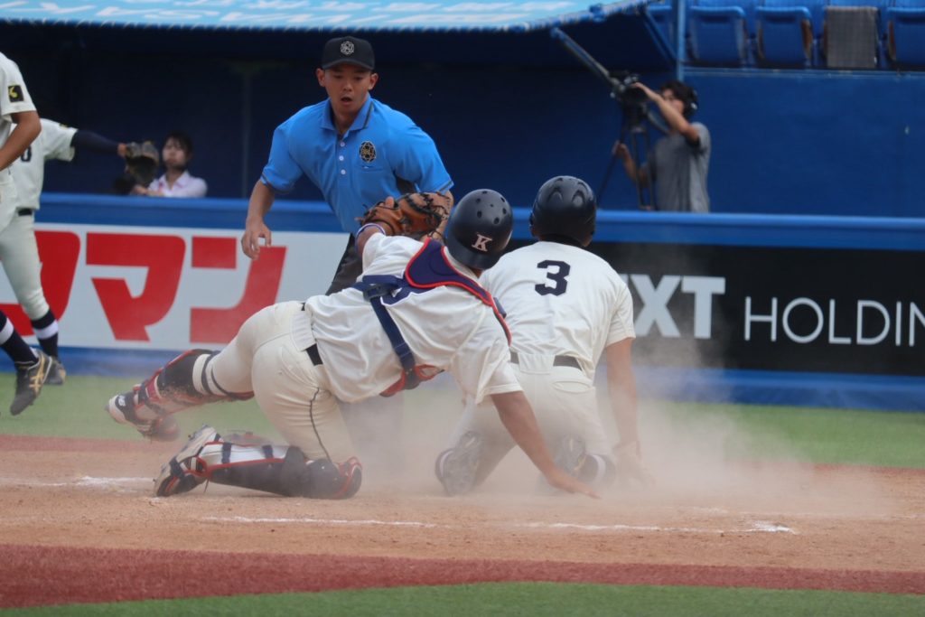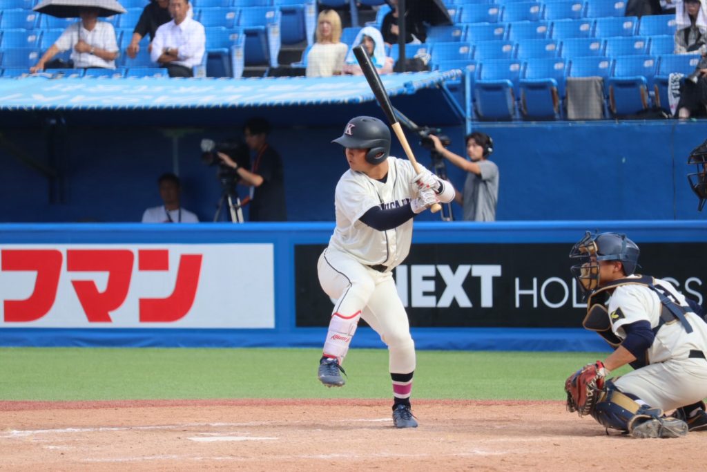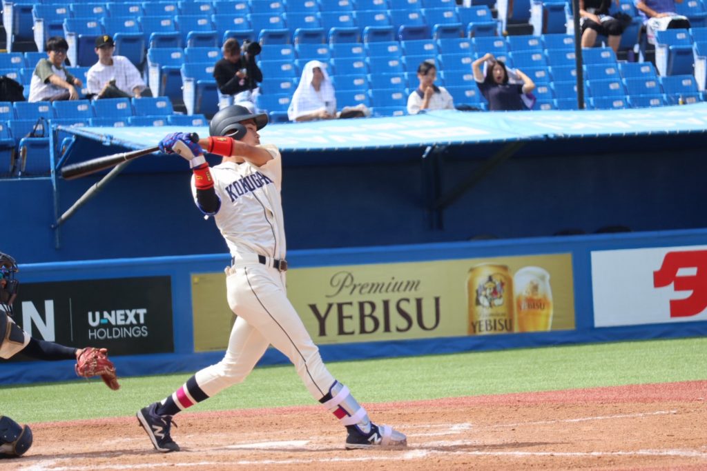 4回に相手にホームランを許しましたが、7回に中西流空(4年/県立岐阜商業)がヒットで出塁すると、その後盗塁、バントとつなぎ、黒木日向(4年/明豊)のセーフティースクイズで同点に追いつきます。